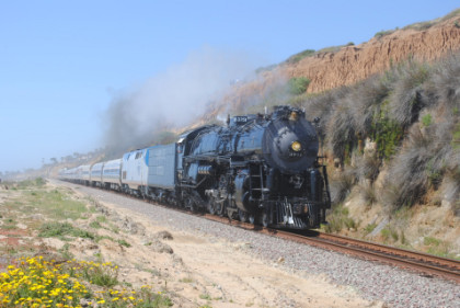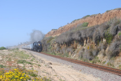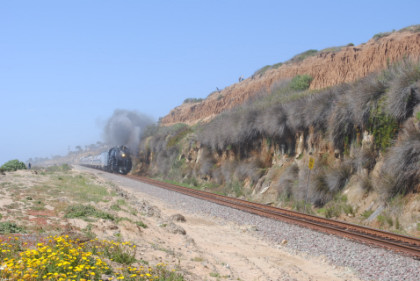 Bob Alkire called Let's Talk Trains as we waited until Santa Fe 3751 passed. We saw the smoke coming along the coast, then the signal went red and soon we saw Santa Fe 3751 approaching.