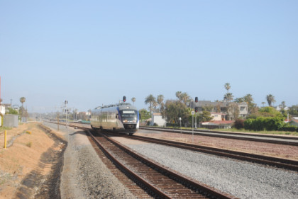 Pacific Surfliner 571 on its way north to Los Angeles. From here, it was back on Interstate 5 which we took to Oceanside, where traffic forced me onto old Coast Highway which we took to Carlsbad and made another stop.