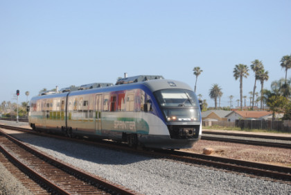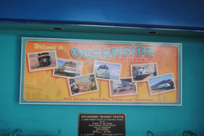 The Sprinter then arrived and we boarded with Bob, Elizabeth and Chris Parker making their first trips on the Sprinter. We rode a round trip to Escondido and once back in Oceanside, used the facilities before taking another picture.