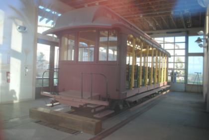 The NC&O traversed the South Bay from San Diego to the border and the Sweetwater Dam. Its route passed hills dotted with olive trees and stately Victorian homes, including Frank Kimball's famous Olivewood. A 60-mile round-trip ticket on the line was once advertised for just $1.00 -- the fare from National City to downtown San Diego -- 10 cents. This car was withdrawn from service in 1914 and restored to its 1880's appearance in 2000.