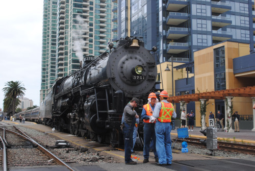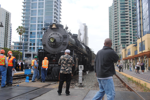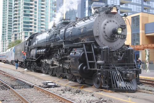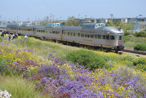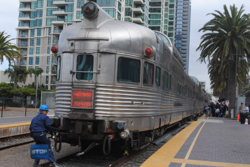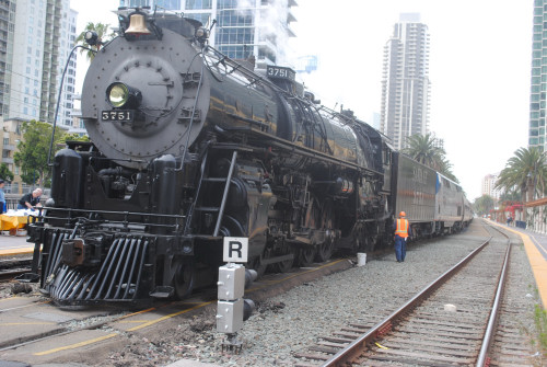 Santa Fe 3751 San Diego to Los Angeles 5/2/2010This two-day excursion was a joint effort between the Central Coast Railway Club, the Pacific Locomotive Association and the San Bernardino Railroad Historical Society. We started to depart San Diego at 10:51 AM with a consist of Santa Fe 4-8-4 3751, Amtrak P42DC 13, Amfleet coaches 82540 and 82500, Horizon coach 54500, Pony Express 800320, Horizon cafe 58017, Horizon coach 54552, Amfleet coaches 82358 and 82570, full dome "Nenana" 800124, short domes "Silver Lariat" PPCX 800190 and "Silver Splendor" PPCX 800604 and dome-observation "Silver Solarium" PPCX 800333.
