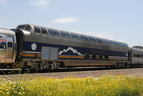 The rear of the steam engine. At 10:00 everyone was allowed to board and I took the rear seat in the full-length dome car "Nenana" which had an electrical plug behind it.