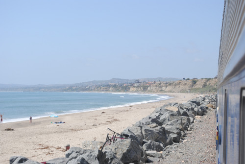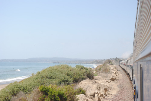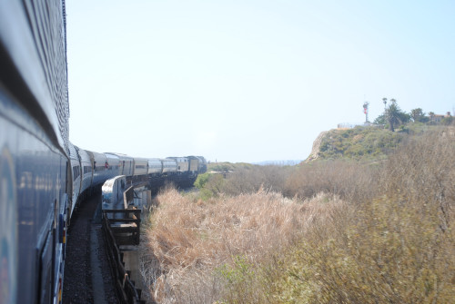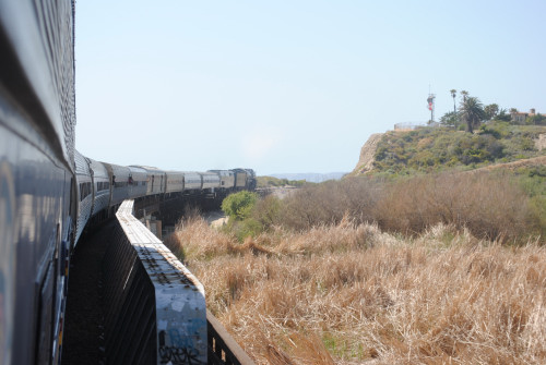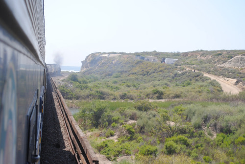 Santa Fe 3751 being serviced. Pacific Surfliner 774 came through as we watered then we were on our way again at 2:42 PM before we passed the rest area where I saw Chris Parker. We headed across Camp Pendleton and then by San Onofre State Beach.