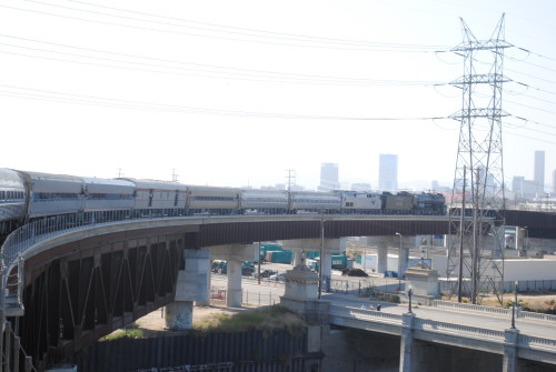 The train crossed the flyover before going by the 8th Street Amtrak Yard then passing the Los Angeles Subway Yard and turning into LAUPT at Mission Tower, where we arrived at 4:50 PM.