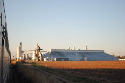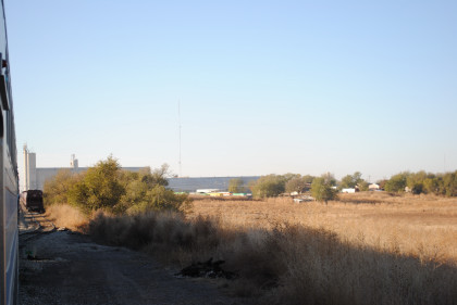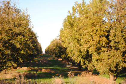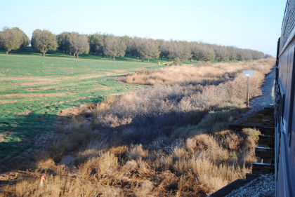 The train went by the first pecan grove.