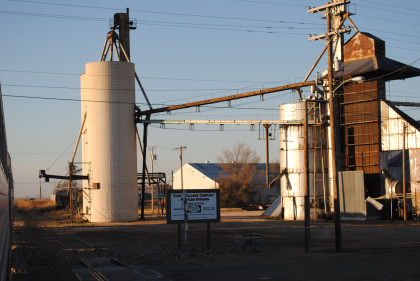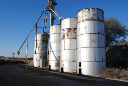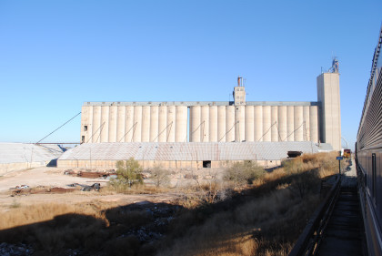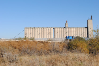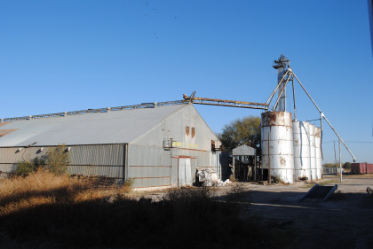 The large grain elevator in Brownfield.