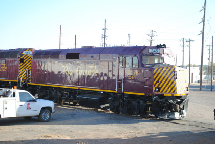 West Texas and Lubbock F40-M2F 456, ex. San Luis and Rio Grande 456, exx. Rail World Leasing, exxx. Canadian-American Railroad 456, nee Amtrak F40PHR 378 built by Electro-Motive Division in 1981.