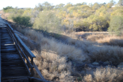 Our train crossed Lost Draw and the bridge is also called "Suicide Bridge". We stopped for a static photograph and a photo runby where most of the passengers detrained for this event.