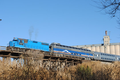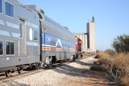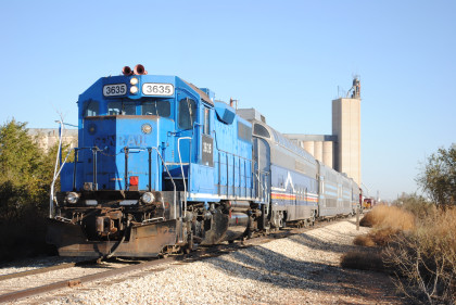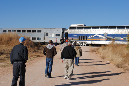 I was up at 5:30 AM and after showering, accessed the Internet, inserted the corrections from yesterday's story and uploaded them then posted it on Trainorders.com. I quickly dressed then Randy Jackson, his wife Marie and I drove to the boarding site with a stop at Starbucks on the way. We parked the car and met Dave and Kathie Smetko, who bought me hot cakes and sausage which I took on the train. After all the passengers boarded, we made our pre-sunrise departure from Water Rampage Road crossing.