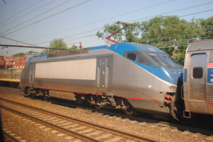 Northeast Regional Train 85 to Wilmington 6/18/2010I boarded the last car, found a nice Amfleet full window seat for my trip to Wilmington and turned on the computer to listen to my CD of Alice Cooper "Dragontown" to pass the time. The train went through the Hudson River Tunnel then sprinted across the open lands of New Jersey to Newark before running at a reduced rate of speed to our next stop of Metropark. Finally a late Acela Express heading to Washington, DC flew by us before we reached there and after that, it was the fast running that the Northeast Corridor is known for as we flew to Trenton.