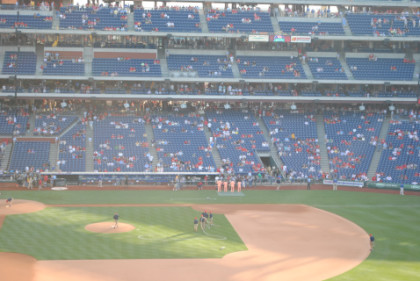 The view of downtown Philadelphia from the ballpark. All those long nights in New York caught up with me, so after the Phillies were leading 3-0 in the first, I returned to my hotel to get a good night's sleep and I found out the next day that the Phillies beat the Twins 9-3.