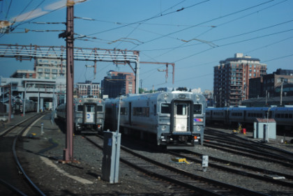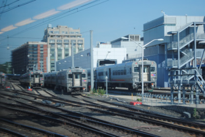 New Jersey Transit trains being serviced at Hoboken. The train headed into the Bergen Tunnel built by the Lackawanna Railroad in 1908 then made its stop at Secaucus Junction where many passengers transferred off our train to other New Jersey Transit line trains and onto this train.
