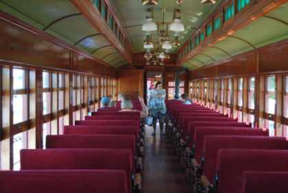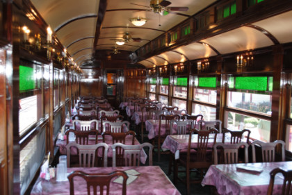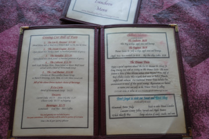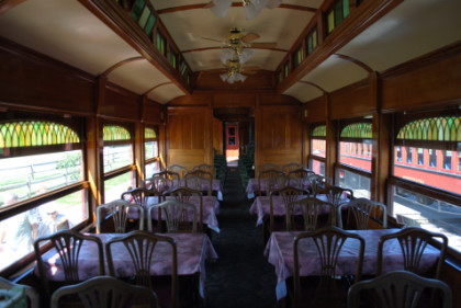 The train includes the United States' only operational wooden dining car on which visitors may dine while riding. Attractions at the station include the fully operational 15 inch gauge Pint-Sized Pufferbelly (Cagney steam-powered ridable miniature railway) a vintage pump car and several c.1930s "cranky cars" along with several gift shops and a cafe.