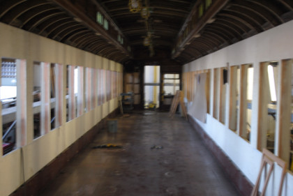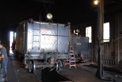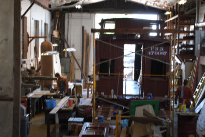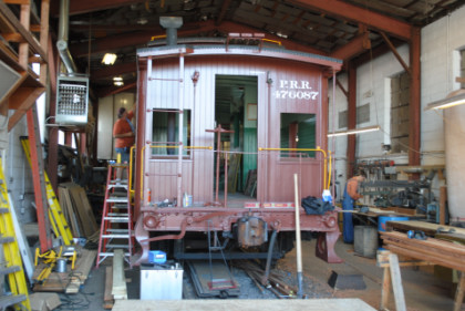 Pennsylvania Railroad caboose 476087 built by the railroad in 1905, being worked on.
