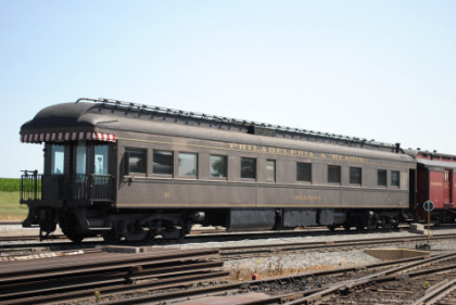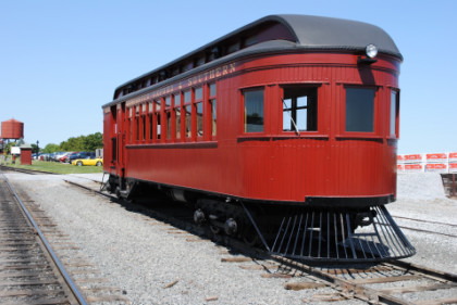 Strasbug Railroad coach 105 "Warren E. Brenner", nee Western Maryland parlour-smoker 814 built by Barney and Smith in 1912. This car ran until 1967 when it was sold to the Pennsylvania Historical Museum Commission (state railroad museum) and was traded to the Strasburg Rail Road in 1970. It is named in honor of the Strasburg Rail Road's long-time corporate treasurer (served 1967–2000) and one of the original organizers of the revived company in 1958-1959.