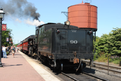 Strasburg Railroad 2-10-0 90, nee Great Western Sugar Company 90 built by Baldwin in 1924. The Great Western of Colorado Railroad was founded in 1901 to serve the Great Western Sugar Company and other sugar, beet and molasses companies operating in Colorado. 90 spent over forty years hauling forty- to fifty-car sugar beet trains between the Great Western's Loveland, Longmont, Windsor, Johnstown and Eaton, Colorado factories. It was purchased by the Strasburg in 1968 for $50,000 and is the railroad's youngest locomotive, as well as the most powerful. It is also currently the only operating decapod in the United States.
