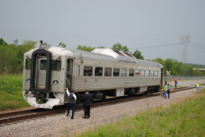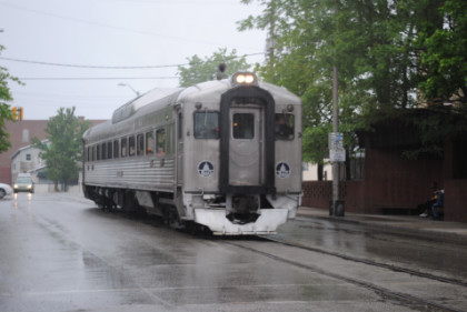 Views of the RDC during its journey along Beeson Avenue. Those of us who braved the rain reboarded and we all proceeded to near Hogsett for the next standing pictures of the B&O RDC and friends.