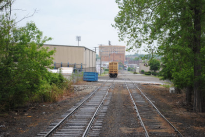 The RDC has reached the end of track on the Uniontown Industrial Line.