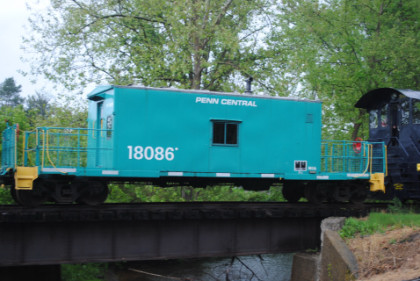 Conrail transfer caboose 18086, ex. Penn Central 18086, nee New York Central 18086 built by the railroad and painted back to Penn Central colours. It came from Uniontown, Pennsylvania where it belonged to the Fayette Central Railroad and was used in train excursions.