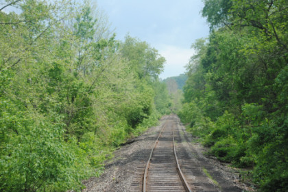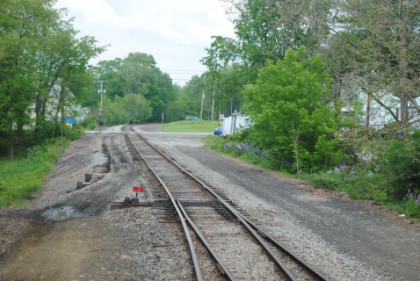 This switch is for the siding and when trains used the branch, they would pull in and then the engine would run around the train to push the cars up the line.
