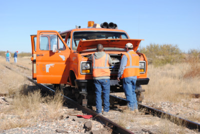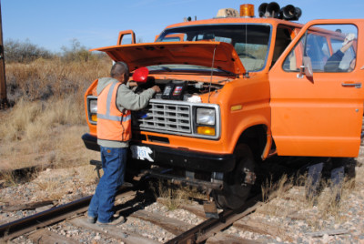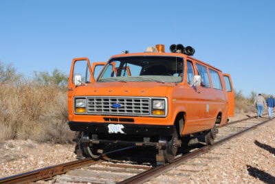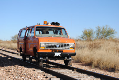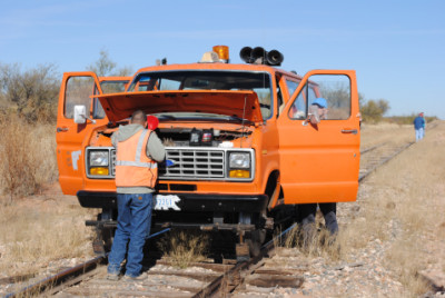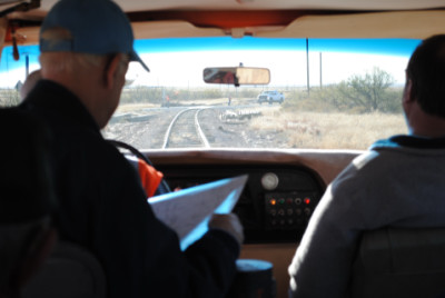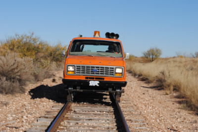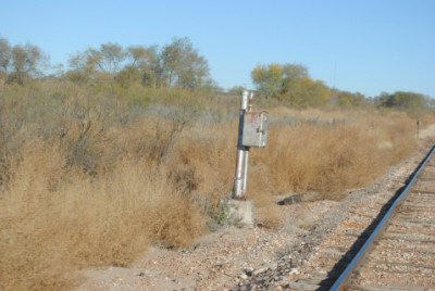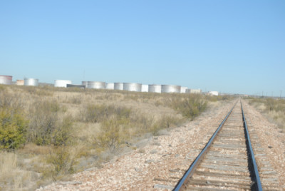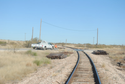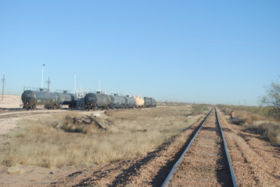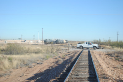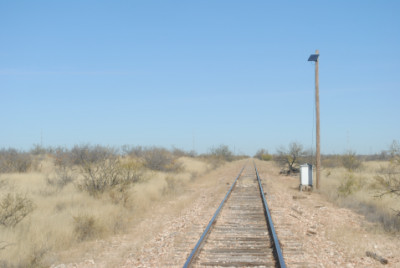 Another old telephone box along our route. The Moose's transmission started running rough so we stopped at the road crossing outside of Wink to add some more fluid and stretched our legs while the crew worked.