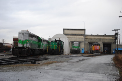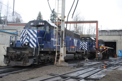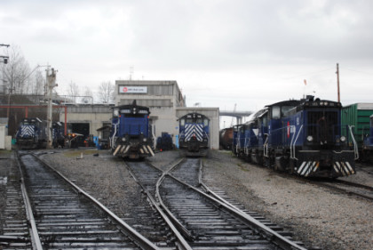 Meeting in the lobby of the Quality Inn at 8:00 AM on Day 5500 of my sobriety, Bob, Elizabeth and I drove south towards Delta but when the tunnel was backed up, made our way over to Southern Railway of British Columbia's Trapp Yard in New Westminster. There we signed releases, put on orange safety vests, hard hats and steel- toed shoes. With that, we were free to take all the pictures we wanted, so here is a visit to the Southern Railway of British Columbia Shops.