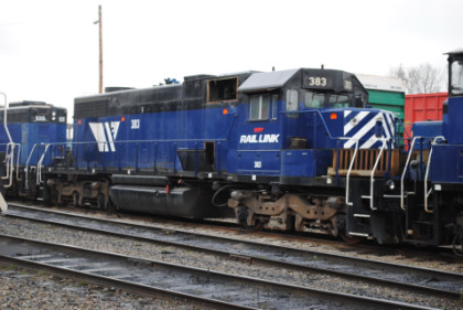 Southern Railway of British Columbia SD38-2 383, nee BC Hydro 383 built by Electro-Motive Division in 1974.