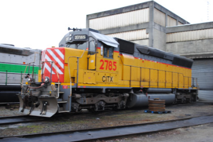 At the east end of the shop was PLM International {CITX} SD40-2 2785, ex. CEFX 2785, exx. Union Pacific 2785, exxx. Union Pacific 4735, nee Southern Pacific 9128, built by Electro-Motive Division in 1969.