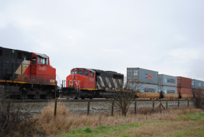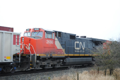Canadian National 2682 West meeting Canadian National 5357 East at Gulf.