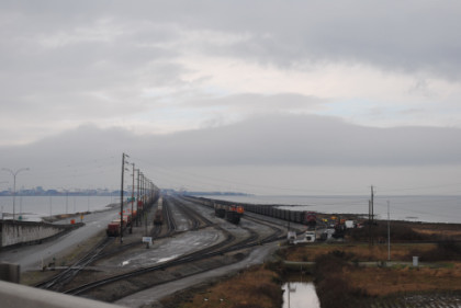 West side of the shop view. With those last pictures, we thanked them for allowing us to be here, turned in all the equipment and signed out. It was quite a neat experience visiting the Southern Railway of British Columbia. From here we drove over to Port Mann to Canadian National's Thorton Yard but there was not anything theres so decided to drive out to Roberts Bank and we were not disappointed.