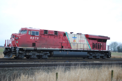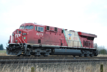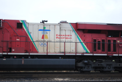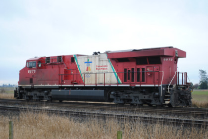Canadian Pacific Railway ES44AC 8873 with a Vancouver 2010 Winter Olympic emblem; the Games would start four days later.