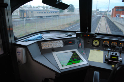 The B end with a cab car set of controls. I relaxed until departure time and was soon returning to Beaverton.