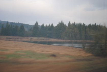 I watched my Jethro Tull "Live in Germany" DVD and we departed on time but were stopped by an open bridge over the Willamette River. Once it closed, we were off to Vancouver, Washington then north of there, we were slowed for track work on the way to Kelso-Longview, our next stop. The movie was "Cloudy with a Chance of Meatballs". Our train was stopped at a red signal at Ostrander and we sat until the dispatcher crossed us over to the other track then made its way to Centralia, with the film ending north of there. I put on the rest of the second disc of "Fawlty Towers" as we proceeded to Olympia-Lacey then Tacoma.