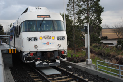 Service began on Monday February 2, 2009. TriMet purchased three Diesel Multiple Units {DMU} cars and one trailer from Colorado Railcar Manufacturing and contracted with CRM, the only U.S. firm that builds DMU's that meet federal standards and complies with Buy America. The line is shared with the Portland & Western Railroad that operates freight service over the railroad. TriMet purchased a state-of-the-art signal system for the Westside Express Service that is being fully integrated with the P&W freight service. All of the 35 freight engines that will operate in this corridor, as well as WES vehicles will include cab signals that are part of an overall signal system that will prevent train-to-train collisions similar to the what occurred in the Metrolink Chatsworth Collision. The line also has a pair of Rail Diesel Cars to help with providing service on this line.
