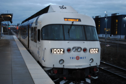 Portland Westside Express ServiceI heard the crossing gate and soon the train I would be riding came into view.