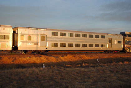 San Luis and Rio Grande bi-level coaches 3009A and 3009B, nee Long Island Railroad 3009 and 3010 built by Tokyu Car in 1990.