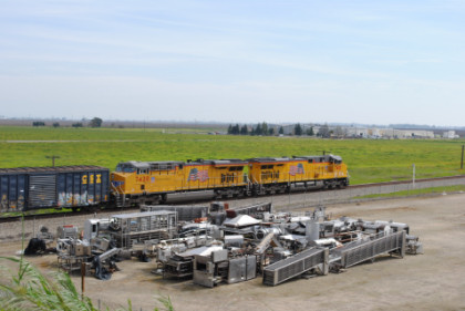 Just before Madera, we saw Union Pacific 7662 East and coming into there, we saw the remains of a Union Pacific derailment.