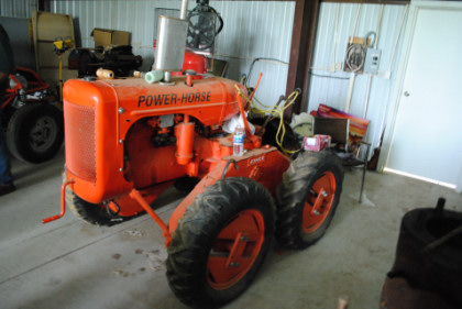 Power Horse tractor with ropes for steering. From here we walked to the Blacksmith Shop.
