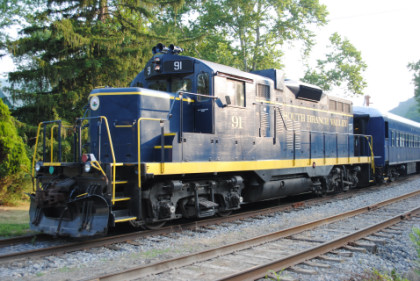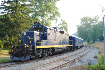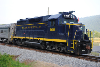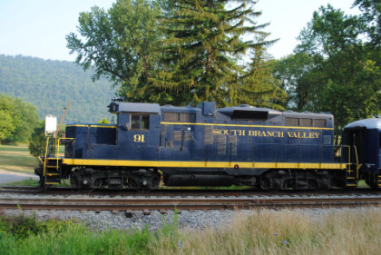 South Branch Valley Railroad GP9 91, ex. South Branch Valley 6447, exx. Norfolk Southern 5002, exxx. Norfolk and Western 2002, nee Norfolk and Western 716 built by Electro-Motive Division in 1956.