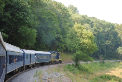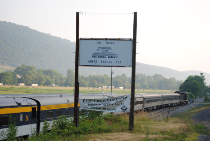 The sign along the highway for the Potomac Eagle train. I returned to the car and started working on the Lehigh Rambler story and once I had pictures set up, joined the line to board the train, meeting my other passengers and distributing business cards.