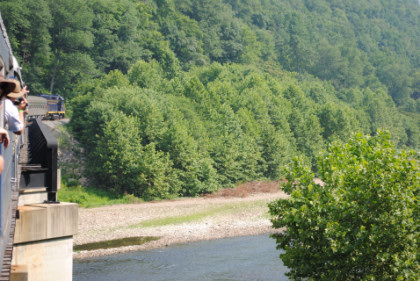The rear of the train crossing the South Branch of the Potomac River.
