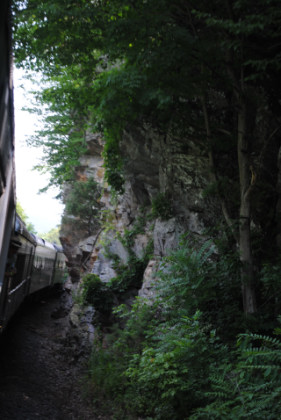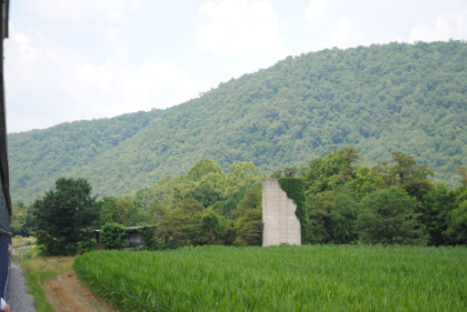 A stone whistle post. We had to stop here until the hourly train from West Virginia Rails had reversed to return to Petersburg.