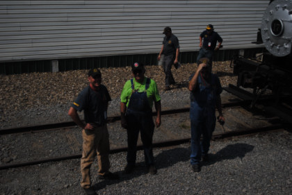 I did not realize my camera was on the wrong setting when I took these pictures of the crews of New Hope 17 and Flagg Coal 75 saying goodbye to us. I gave them all one more thank you for coming to this event as we departed Petersburg.