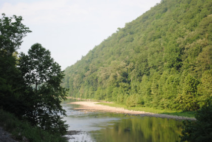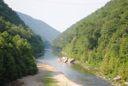 We curved towards the South Branch of the Potomac River bridge but stopped at a road for a photo runby.