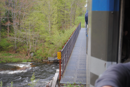 At Snow Junction, we stopped to throw the switch for the Adirondack Scenic Railroad Line then stopped before re-aligning it for the Mohawk Adirondack & Northern Railroad Line to Lyons Falls, where we would be going tomorrow.