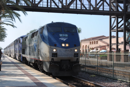 That afternoon Winston Walker, his daughter Christy and I drove to Fullerton and knowing that it should be on Pacific Surfliner 578, we bought our $7 Metrolink day passes then crossed the pedestrian bridge to catch that train, which arrived a few minutes early.