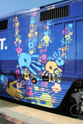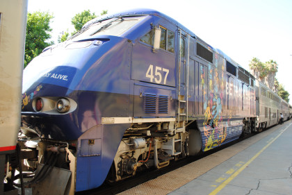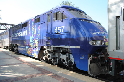 On its Pacific Surfliner line, Amtrak has a new Operation Lifesaver locomotive, F59PHI 457. I saw it pass me during my Metrolink ride on September 25th, 2011 on Pacific Surfliner 774. The following day, I saw it on Pacific Surfliner 567 as I was on my way to Solana Beach on Pacific Surfliner 564.