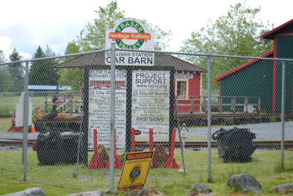 Passenger service ceased on the BCER Fraser Valley line in 1950, however Sullivan Station remained on its site until late 1968 when it was moved to Clow Farm on 156th Street. It was returned to Sullivan in September 2003 to the yards of the Fraser Valley Heritage Railway Society’s Sullivan Station Car Barn. The Society will be restoring the station in conjunction with the Sullivan Community Association.