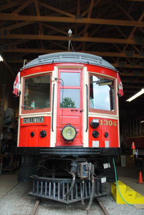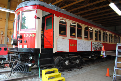 Car 1304 left Canada in 1955 and moved to Glenwood, Oregon to reside at the “Trolley Park” of the Oregon Electric Railway Historical Society. It was returned to Canada, to the FVHRS in 2009.