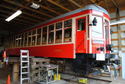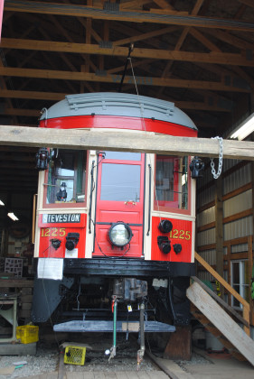 A few of the projects they undertook as part of the restoration include: Removing 90 years of paint layers from the original cherry and oak interior and refinishing and varnishing the wood to its original beauty. Drafting patterns and repairs of the original steel side beams and structural posts to support the wooden side structure of the tram. After years of exposure to the elements, much of the wood was rotten. The new beams and posts ensure the structural integrity of the tram. Entirely reconstructing the seats, including having casts made for the 18 iron seat frames in the tram, working with a foundry to recreate the seat frames, and finding a supplier that could replicate the original twill weave rattan upholstery. Each individual seat had to be machined and adjusted to ensure smooth movement of their reversing mechanism. Rewiring the tram's electrical system, including the interior system that lights the interior, and the wiring to the switches, controllers, and motors that operate the tram. Missing brass hardware was recast and produced, including luggage racks, window hardware, and handles. Working with other tram restoration groups to locate pieces that had been collected from sister cars of BCER 1223. Some of these items were donated to the Friends, including the controllers. Others pieces were loaned to them so they could use them to make patterns, including the trolley pole base. Countless other tasks were completed by the volunteers and their supporters.